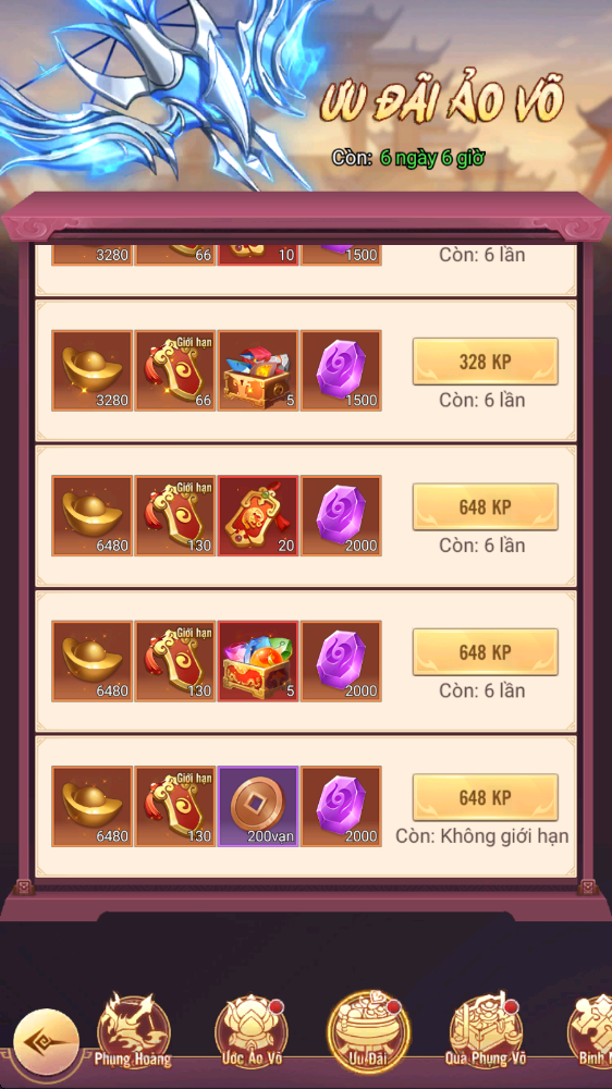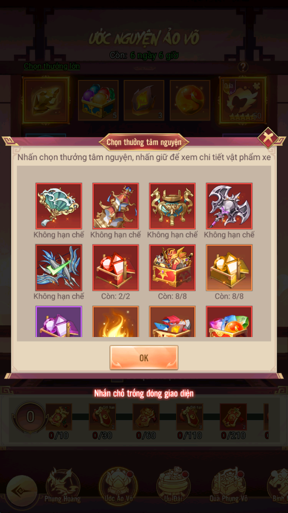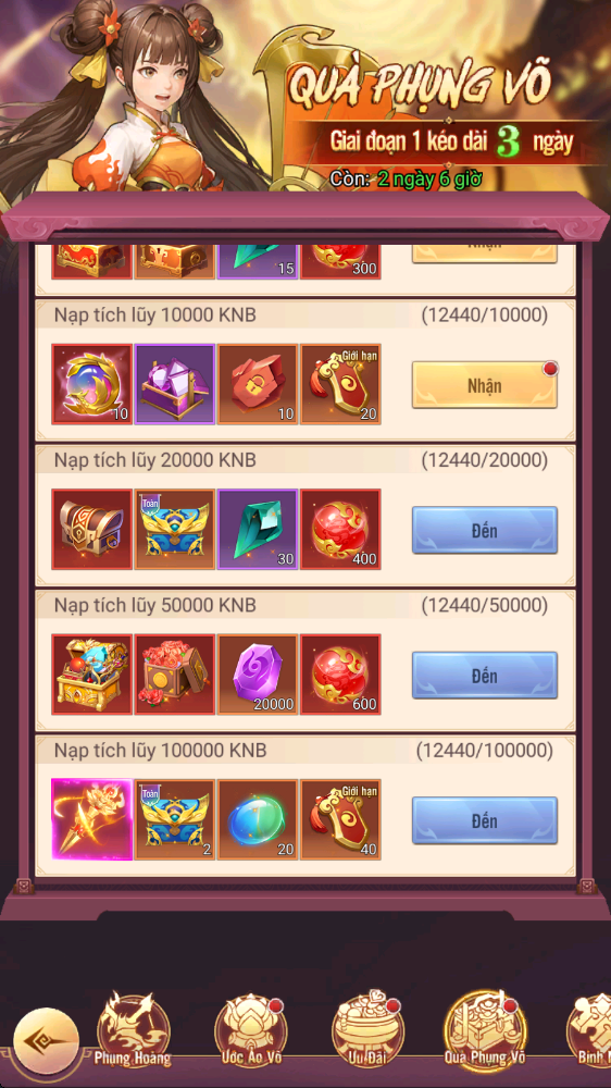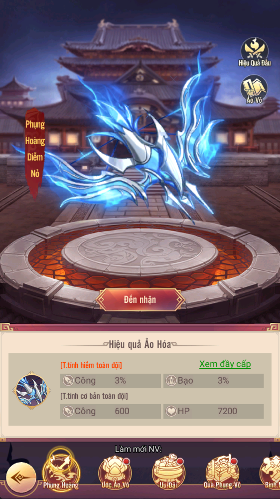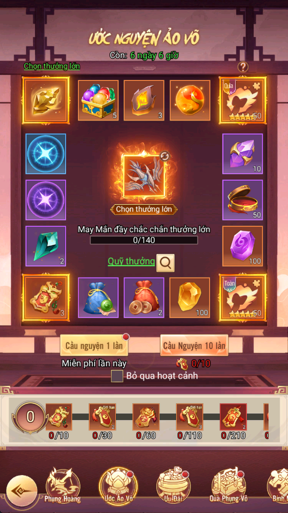- Thưởng: Phụng Hoàng Diễm Nỏ, Tự Chọn Linh Thạch Cấp 5...