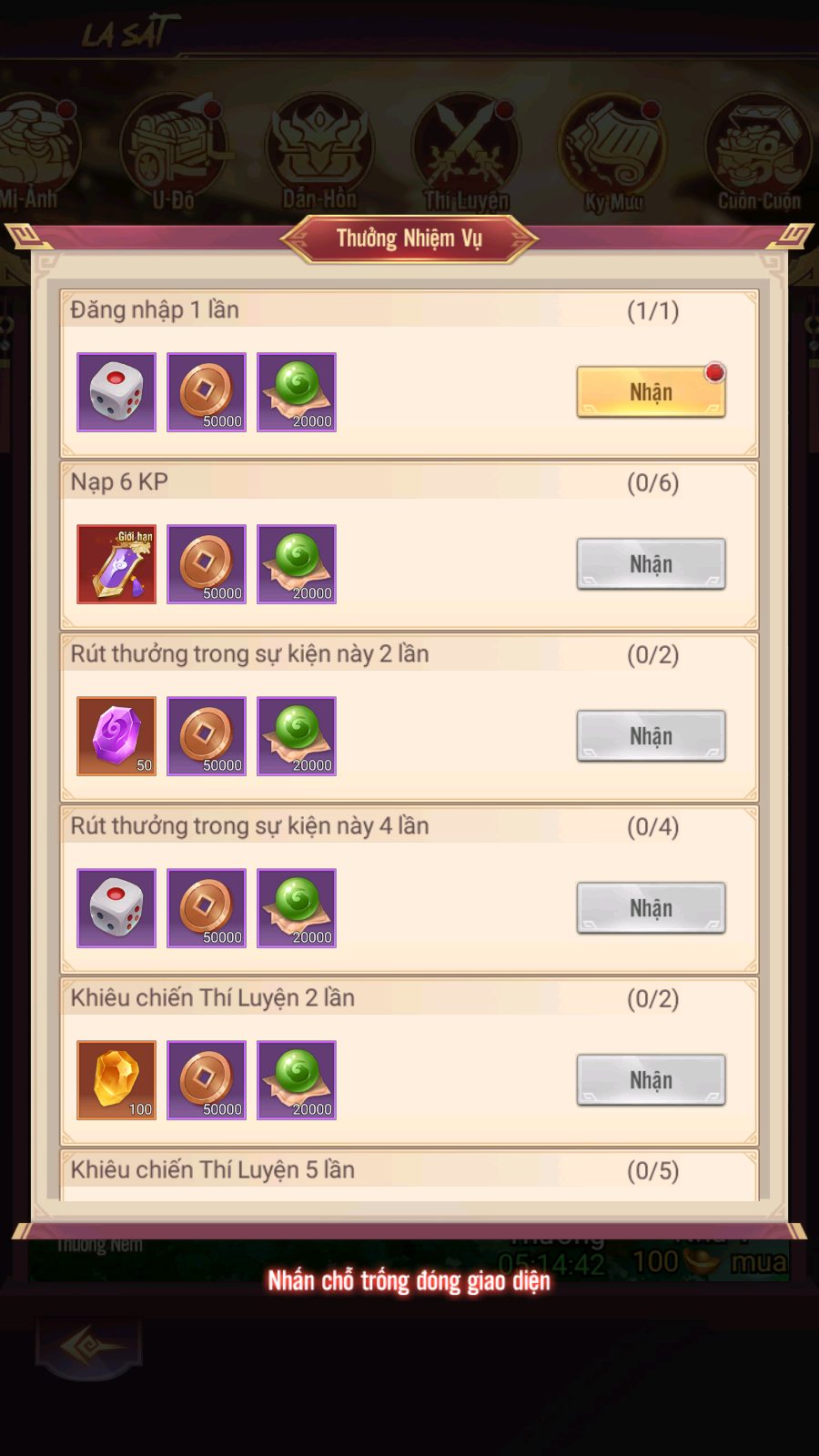 - Thưởng: Mật Lệnh La Sát, Lệnh Chiêu Hiền, KNB...