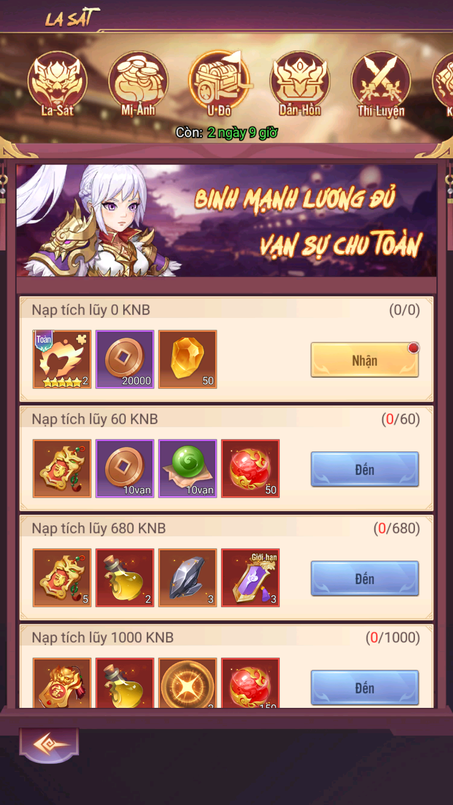 - Thưởng: Mật Lệnh La Sát, Lệnh Đoạt Bảo Cao Cấp, KNB...