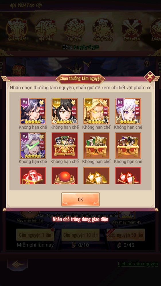 - Thưởng: Mật Lệnh Thị Hồn, Lệnh Chiêu Hiền, KNB...