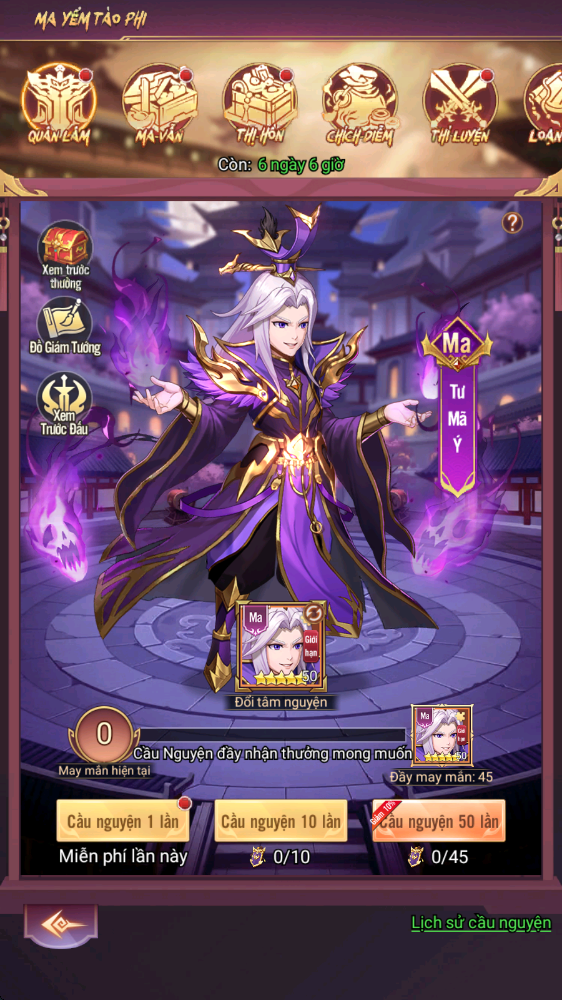 - Thưởng: Ma - Tào Phi, Thần · Mã Vân Lộc, Thần - Quan Vũ, Ma - Lữ Linh Khởi, Ma - Tư Mã Ý...