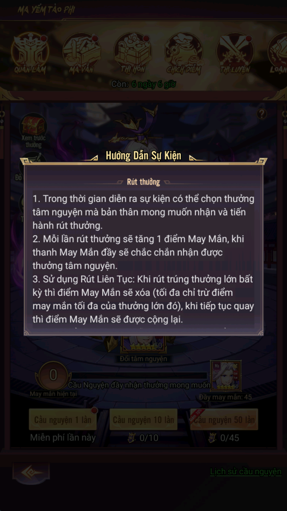 - Hình thức: Sử dụng Mật Lệnh Thị Hồn để rút thưởng cao cấp, có thể tùy ý chuyển đổi phần thưởng mong muốn