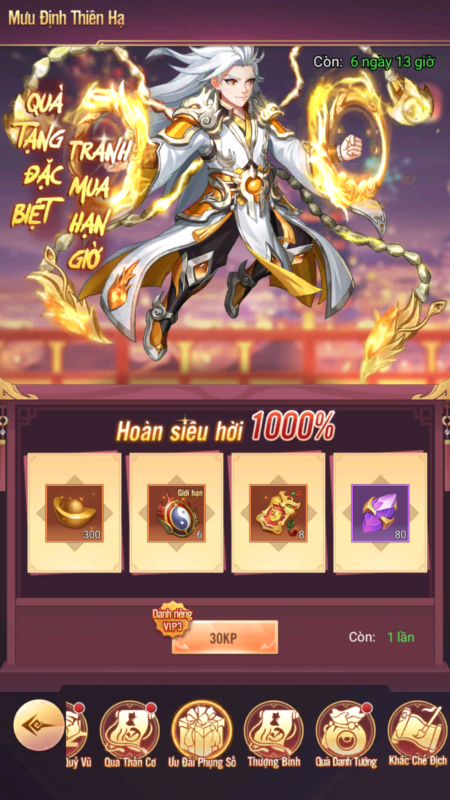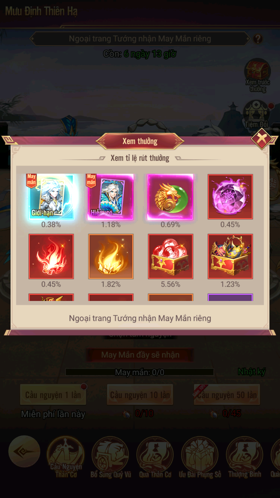 - Thưởng: Chiếu Lệnh Thần Cơ, Hồn Thần Khí, Rương Tự Chọn Đỉnh Cấp...