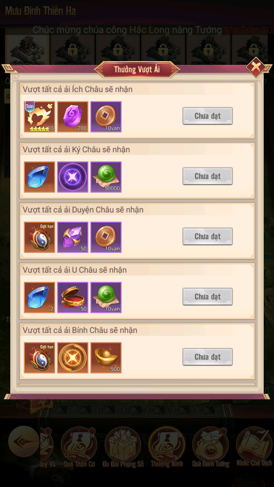 - Hình thức: Vượt ải và chiếm lĩnh thành trì để nhận thưởng, vật phẩm nhận được có thể dùng đổi quà tại Tiệm