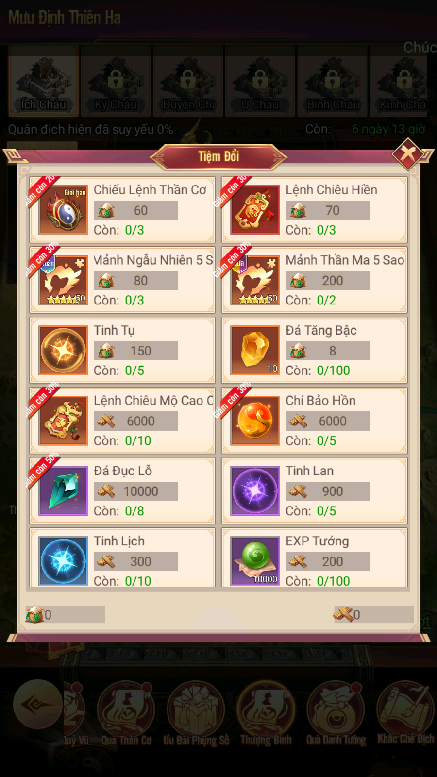- Thưởng: Chiếu Lệnh Thần Cơ, Lệnh Chiêu Hiền, KNB...
