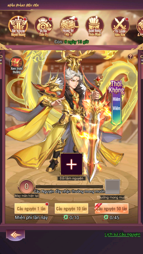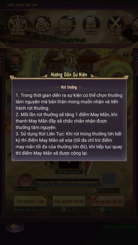- Hình thức: Sử dụng Chiếu Lệnh Nhân Hoàng để rút thưởng cao cấp, có thể tùy ý chuyển đổi phần thưởng mong muốn