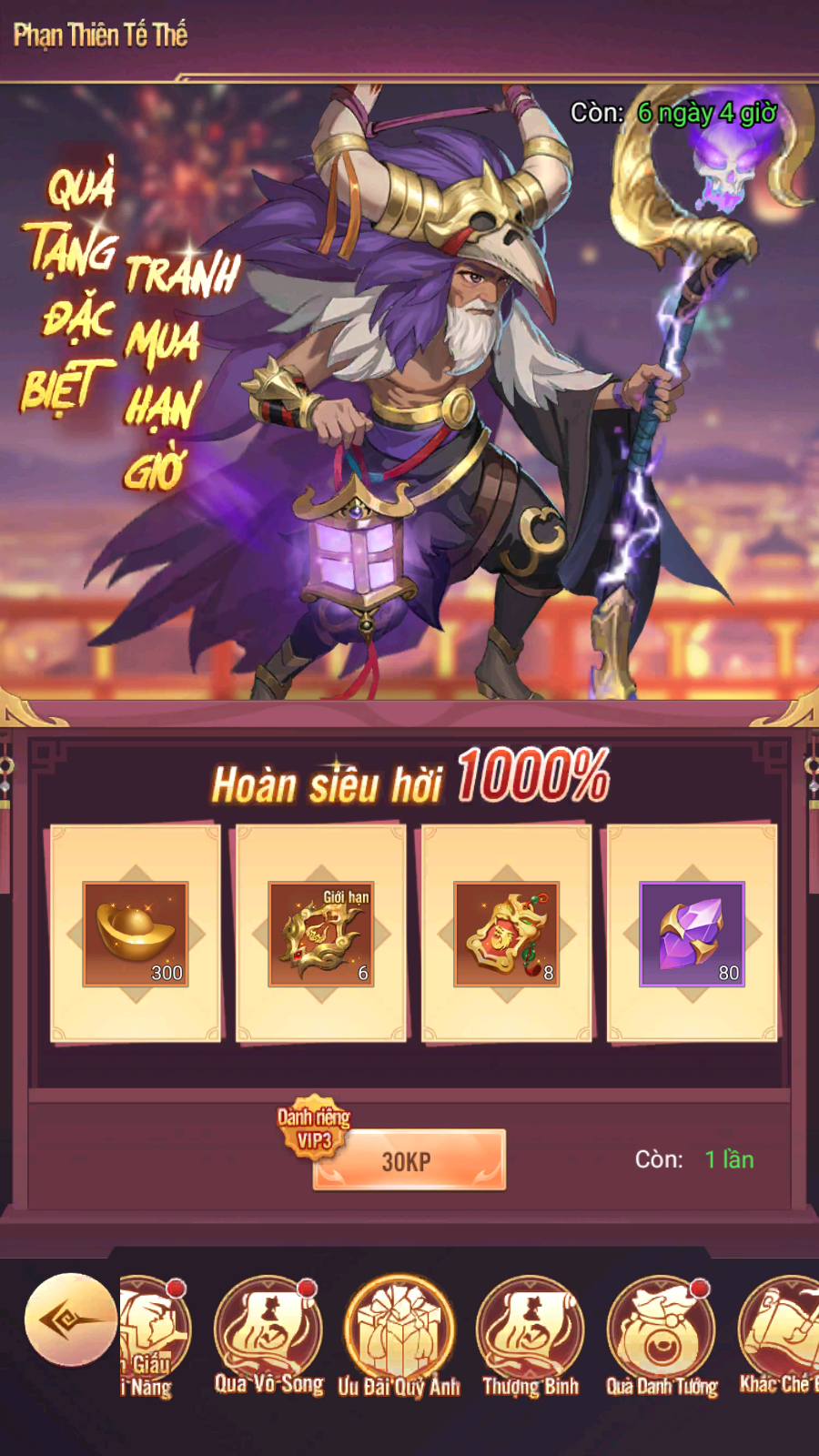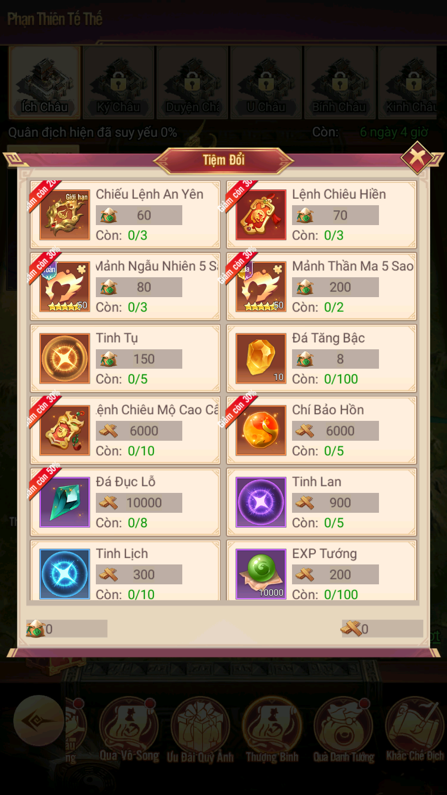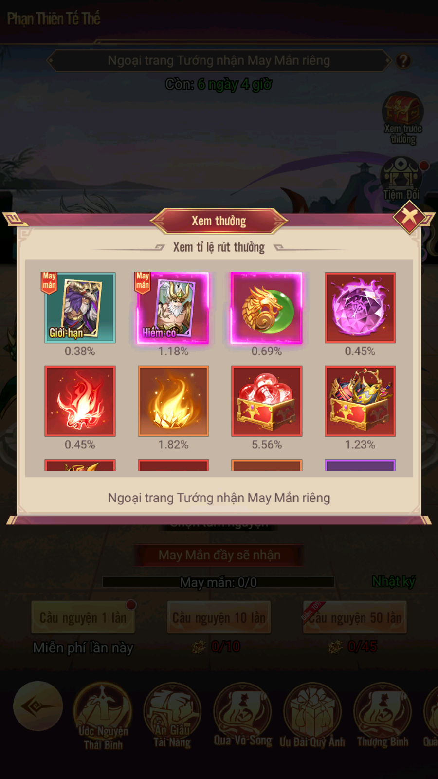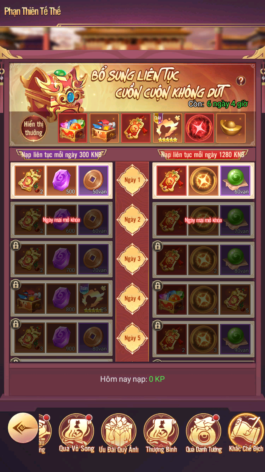 - Thưởng: Rương Tự Chọn Nguyên Liệu Hiếm 4, Lệnh Chiêu Hiền, Lệnh Chiêu Mộ Cao Cấp…