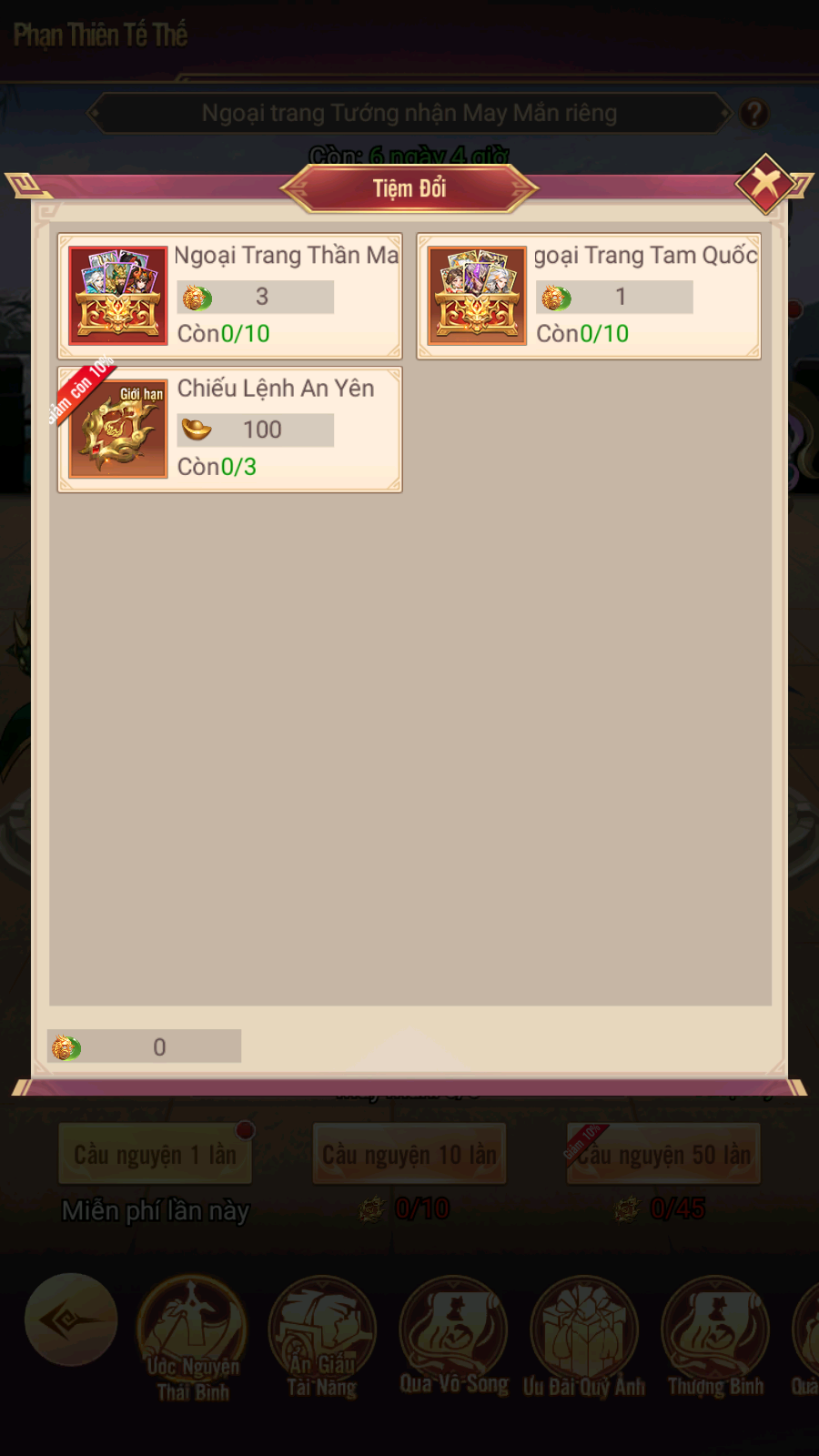 - Thưởng: Chiếu Lệnh An Yên, Lệnh chiêu mộ cao cấp, Đá tăng cấp thần khí, KNB...