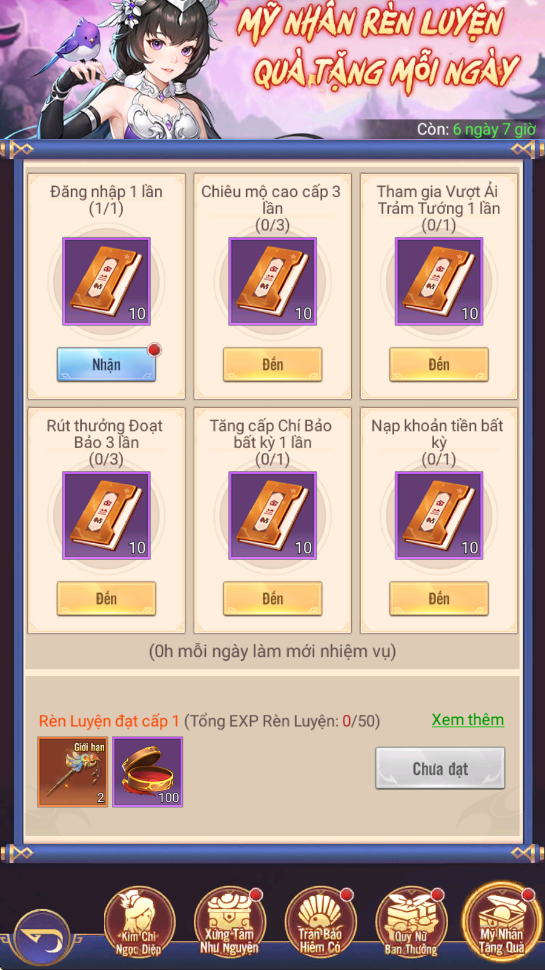 - Thưởng: Mỹ Nhân - Đổng Bạch, Tự Chọn Linh Thạch Cấp 4...