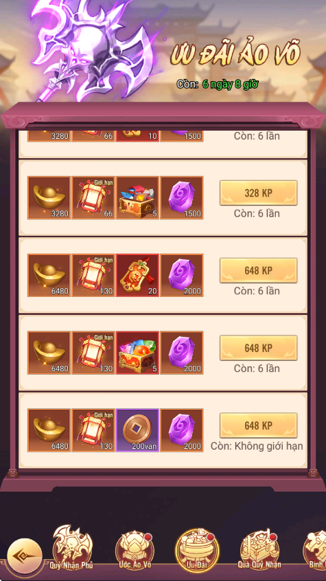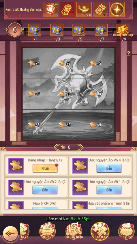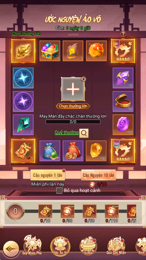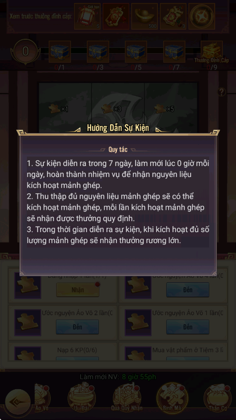 - Thưởng: Đèn Ước Nguyện, Lệnh Chiêu Hiền, KNB...