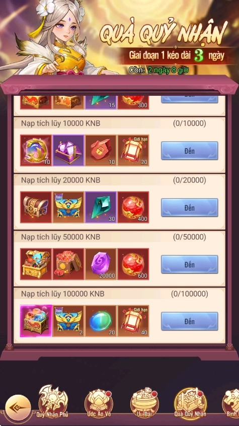 - Hình thức: Nạp tích lũy để nhận phần thưởng theo các mốc