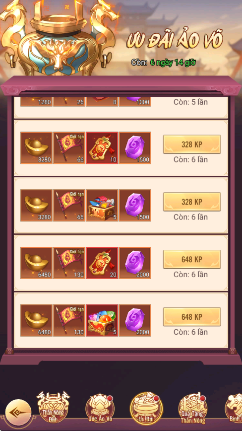 - Hình thức: Mua các gói quà mua ngay theo nhiều mức