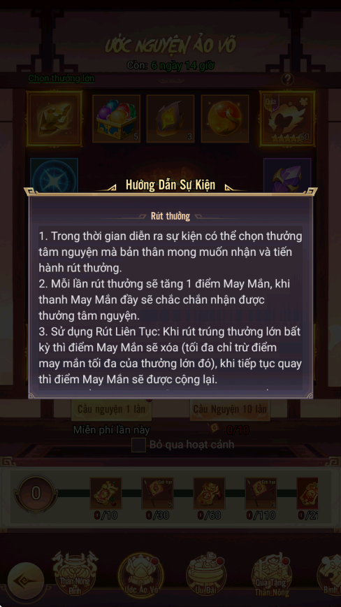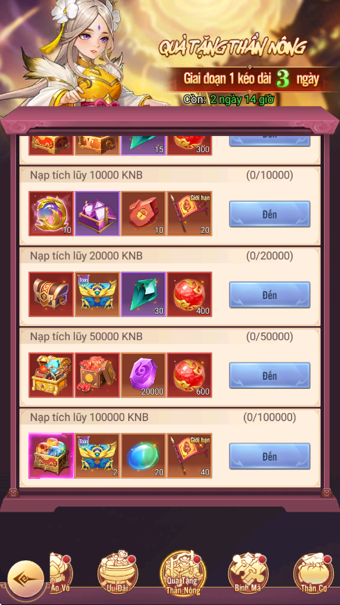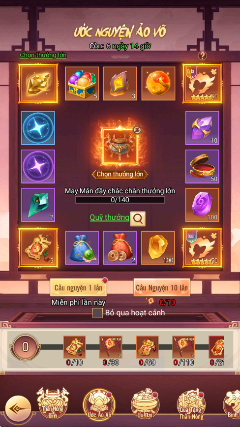 - Thưởng: Thần Nông Đỉnh, Tự Chọn Linh Thạch Cấp 5...