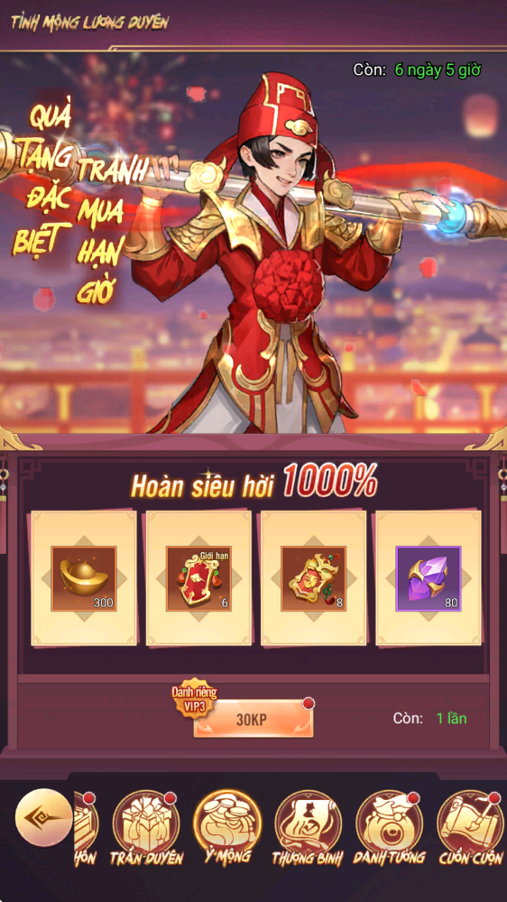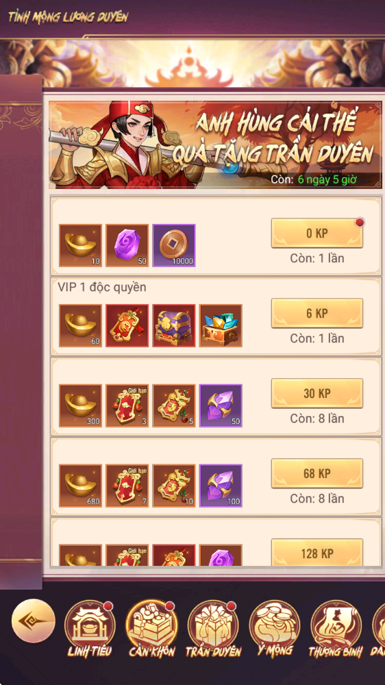 - Thưởng: Rương Tự Chọn Nguyên Liệu Hiếm 4, Lệnh Chiêu Hiền, Lệnh Chiêu Mộ Cao Cấp…