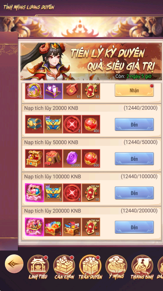 - Thưởng: Chiếu Lệnh Linh Tiêu, Lệnh chiêu mộ cao cấp, Đá tăng cấp thần khí, KNB...