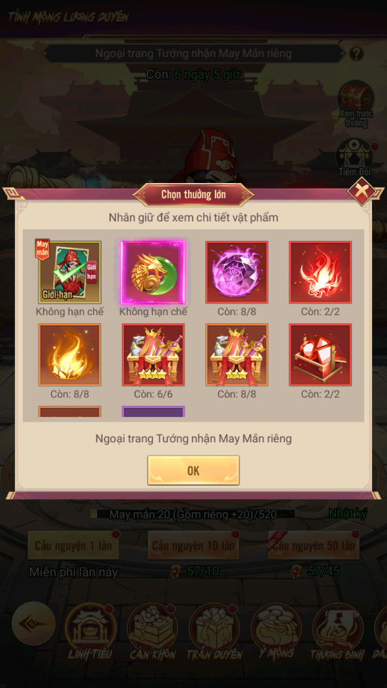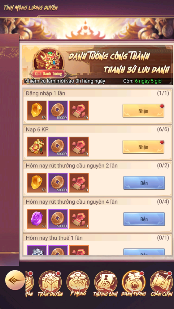 - Thưởng: Chiếu Lệnh Linh Tiêu, Lệnh Chiêu Hiền...