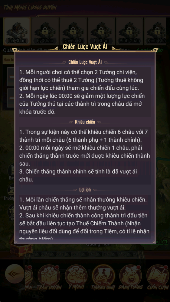 - Hình thức: Vượt ải và chiếm lĩnh thành trì để nhận phần thưởng; đạo cụ đổi thưởng trong phần thưởng có thể sử dụng tại Tiệm Đổi