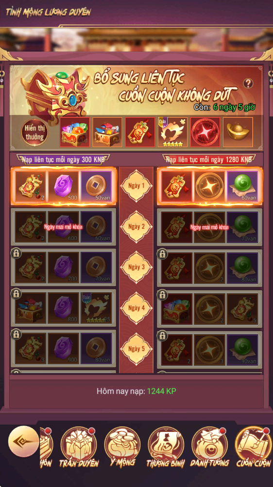 - Hình thức: Nạp liên tiếp mỗi ngày đạt mốc quy định để nhận phần thưởng