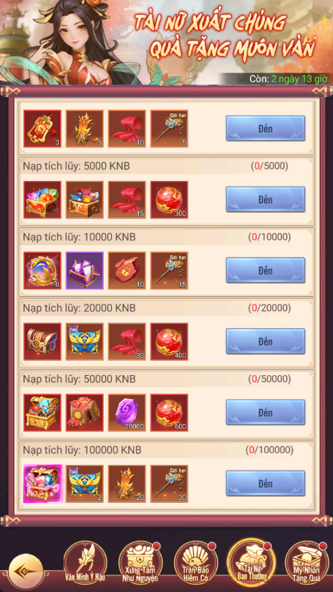 - Hình thức: Nạp tích lũy để nhận phần thưởng theo các mốc